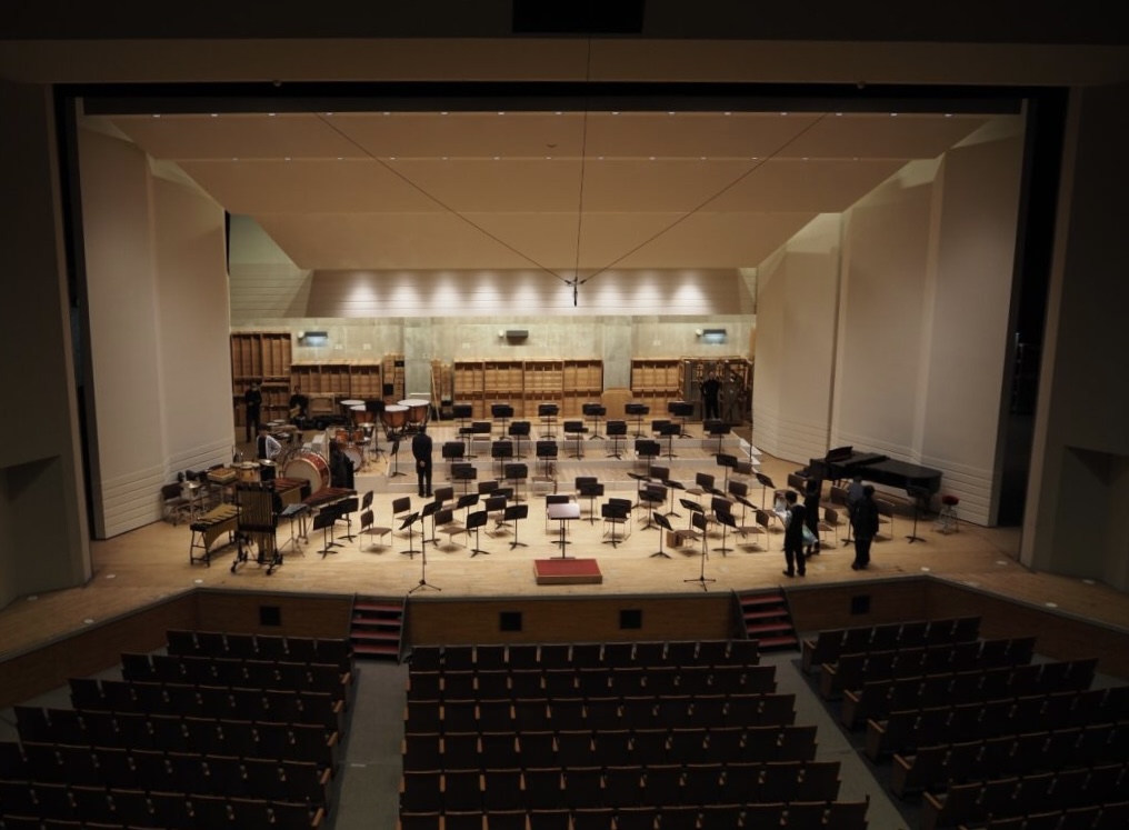 皆で協力して、打楽器の運搬、ひな壇設営など、準備を進めます。